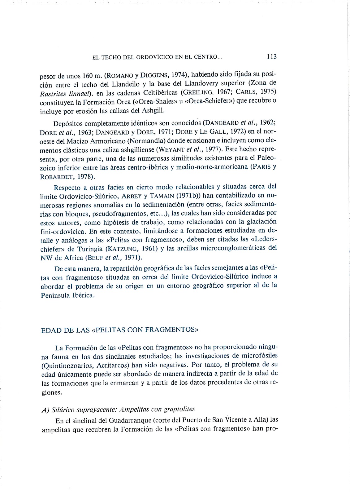Artículo publicado en 1980 en la revista Stvdia Geologica Salmanticensia, por Robardet, Vegas y Paris. Estudian las "Pelitas con fragmentos" (traducción literal del término utilizado en Normandía, Francia) del Ordovícico superior, en los sinclinales del Guadarranque y de Herrera del Duque.